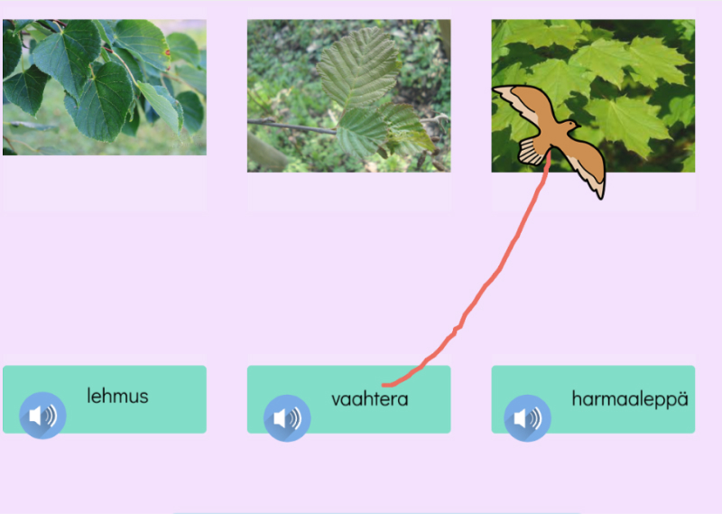 Tunnista kasveja ja tarkemmin puita. Tässä tehtävässä tunnistetaan puulajeja. Yhdistä oikein.