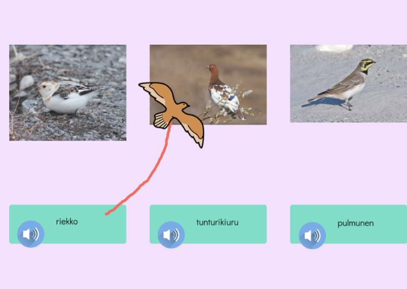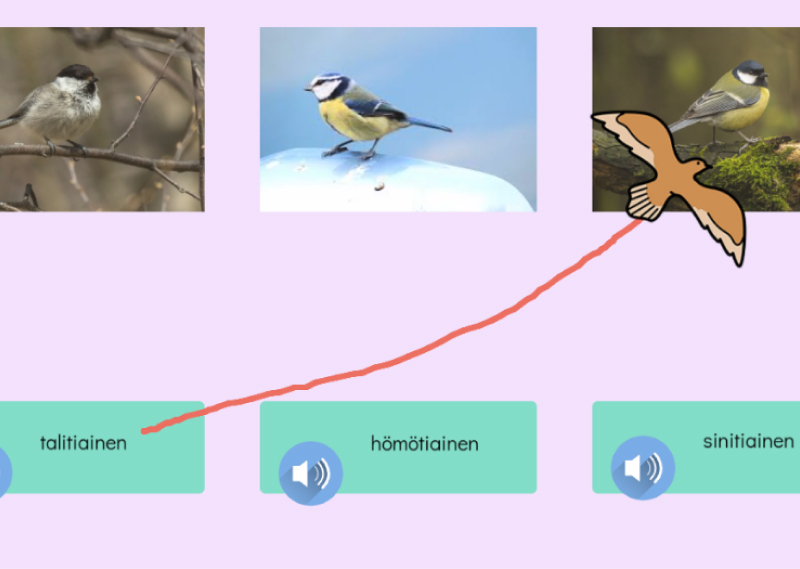 Tunnista eläimiä. Tässä tehtävässä tunnistetaan Suomen lintuja. Yhdistä oikein.