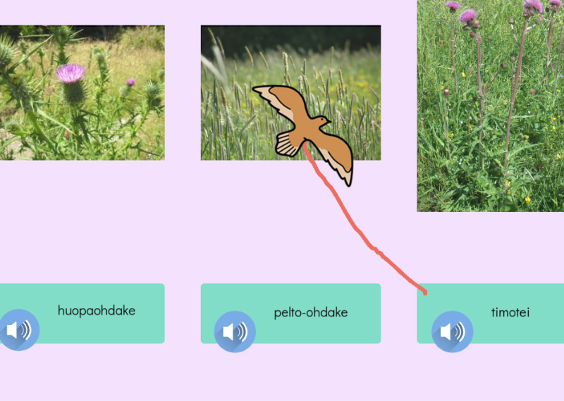Tunnista kasveja. Tässä tehtävässä tunnistetaan suomalaisia niityn kasveja. Yhdistä oikein.